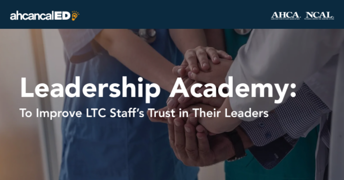 AHCA/NCAL’s Leadership Academy equips long term care and assisted living facility leaders with the skills needed to build and enhance trust with and between their staff which translates into a more effective team, better outcomes, and less staff turnover.